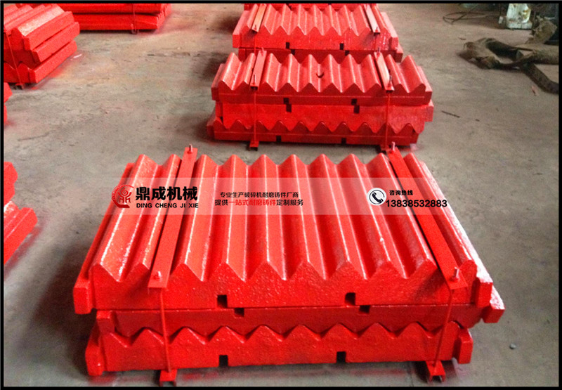 鼎成機械ZGMn13Cr2材質鄂板,誰用誰知道耐磨性一級棒,適合破碎石灰石、鵝卵石、頁巖、青石等含硅量較高的物料。